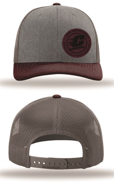 60/40 cotton/polyester 100% polyester mesh back Structured, six-panel, mid pro Pre-curved bill Snapback closure OSFM Heather Grey/Maroon with Leather patch